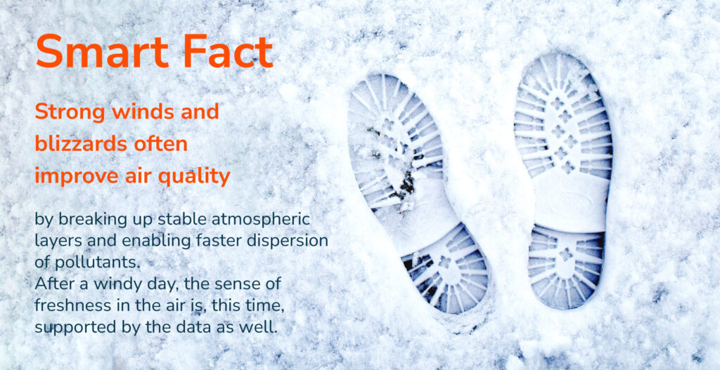 When snow combines with strong winds and turns into a blizzard, the air no longer remains still. Wind breaks up stable atmospheric layers, disperses pollutants, and often brings short-term relief – so even when the weather outside appears harsh, the air being measured can be cleaner than the day before.